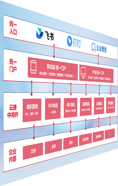 对协作平台提供支持服务,,,,支持企业应用与协作平台对接,,包含组织同步、、、、消息集成、、、、待办集成等。。。支持目前主流的协作平台:钉钉、、企微和飞书。。。